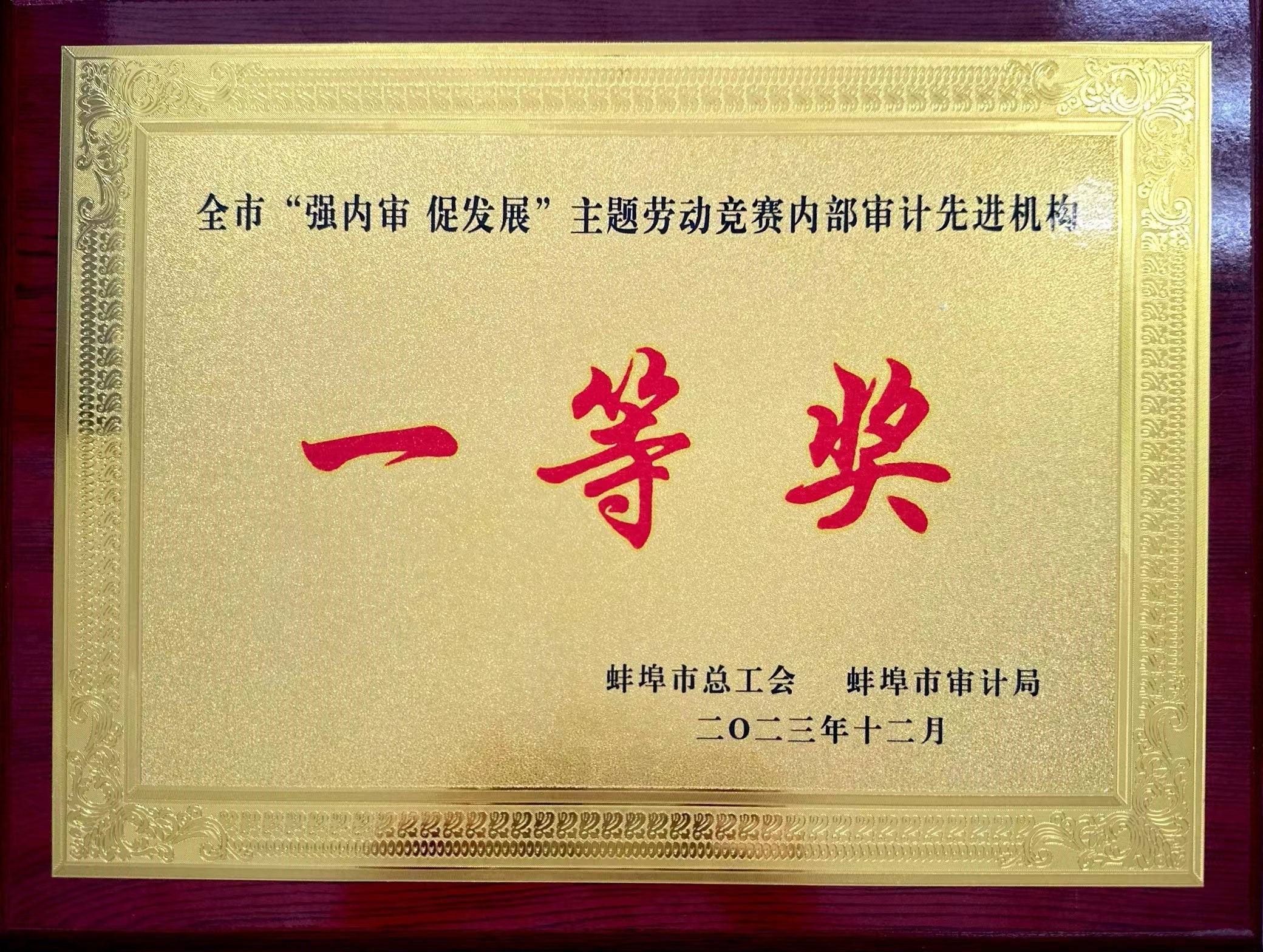 2023年12月26日,蚌投集團(tuán)在市審計(jì)局、市總工會(huì)聯(lián)合舉辦的全市“強(qiáng)內(nèi)審 促發(fā)展”主題勞動(dòng)競(jìng)賽中榮獲全市“強(qiáng)內(nèi)審...